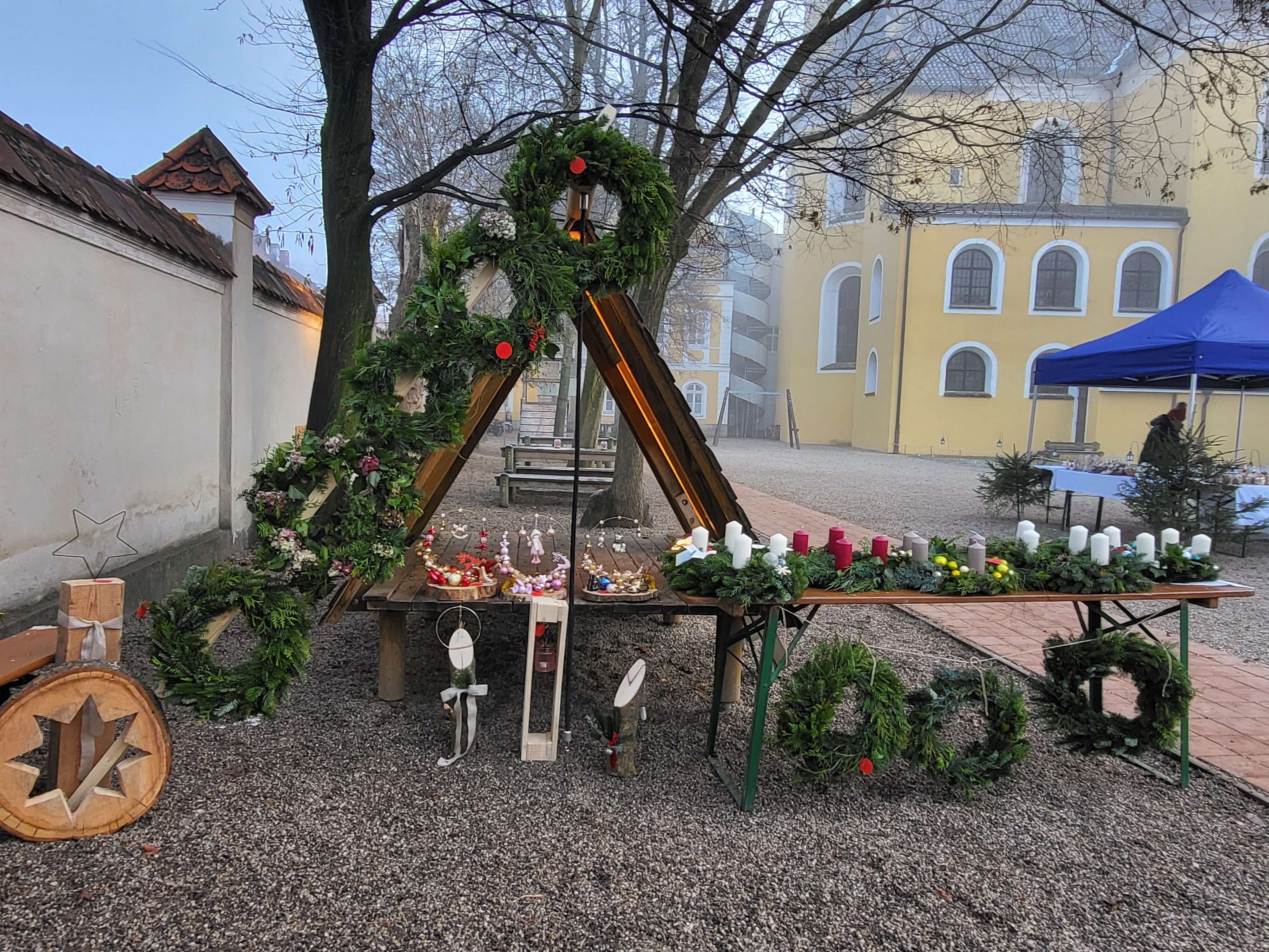 Der Adventsmarkt selbst fand in unserem Afragarten statt, der festlich geschmückt und mit zahlreichen Lichtern in eine ganz besondere, weihnachtliche Atmosphäre getaucht war. An den vielen Verkaufsständen konnten die Besucher stöbern und sich bei Hot Dogs, Punsch und Crêpes stärken.